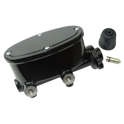 This black anodized oval tandem master cylinder is a sleek and functional upgrade for custom builds, street rods, classic trucks, or LS swaps. With a 1-1/8” bore and dual outlet ports, it’s designed to handle manual or power brake systems with front/rear split circuits.